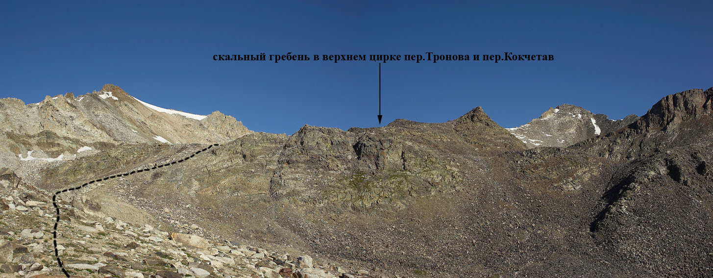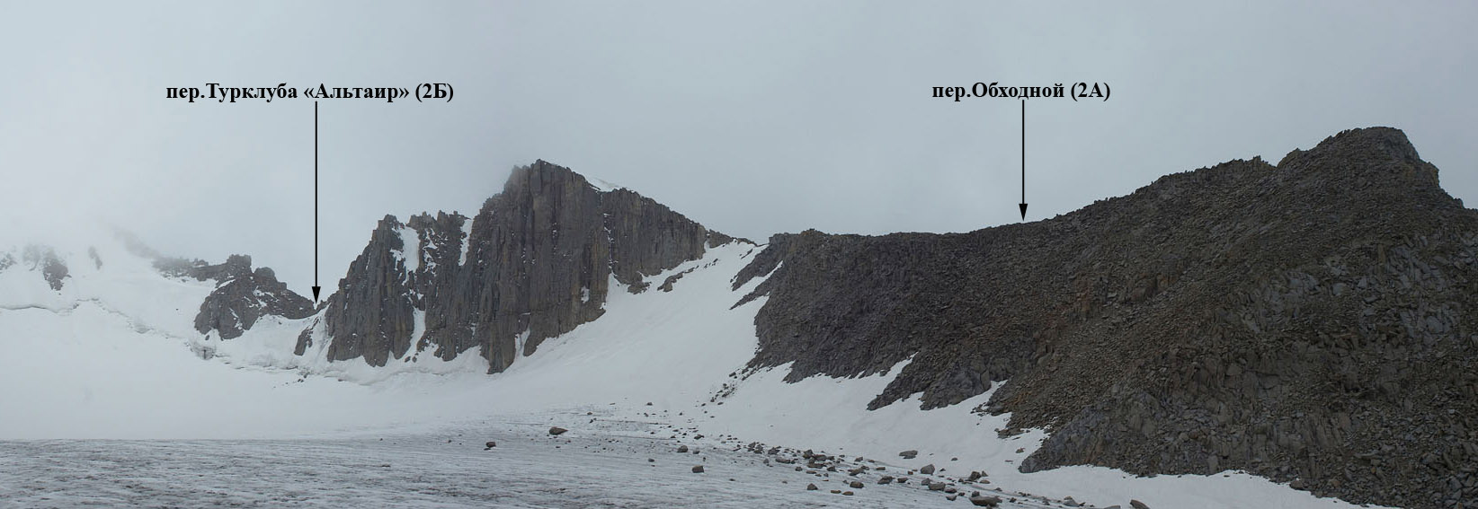 Перевальная связка: пер.Хейердала (3704 м) + пер.Обходной (3724 м) [общая сложность 1Б*; по факту прохождения 2А].